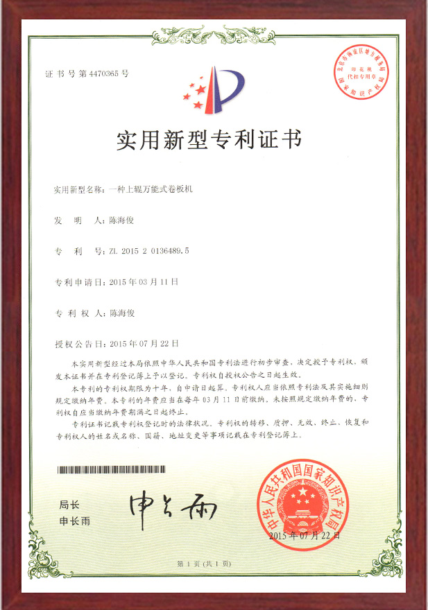 一種上輥萬能式卷板機專利